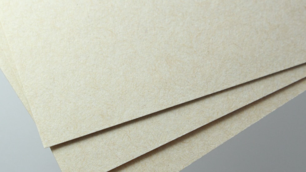 「ヴィンテージ」は「年代物」・「古着」を表す意味で使われています。針葉樹の未晒パルプと広葉樹の晒パルプを配合した原紙をベースに、使い込んだような風合いと年季の入ったヴィンテージ感が特徴的で、暗い色合いではなく全体的に明るい色合いになっているベージュ色の用紙です。